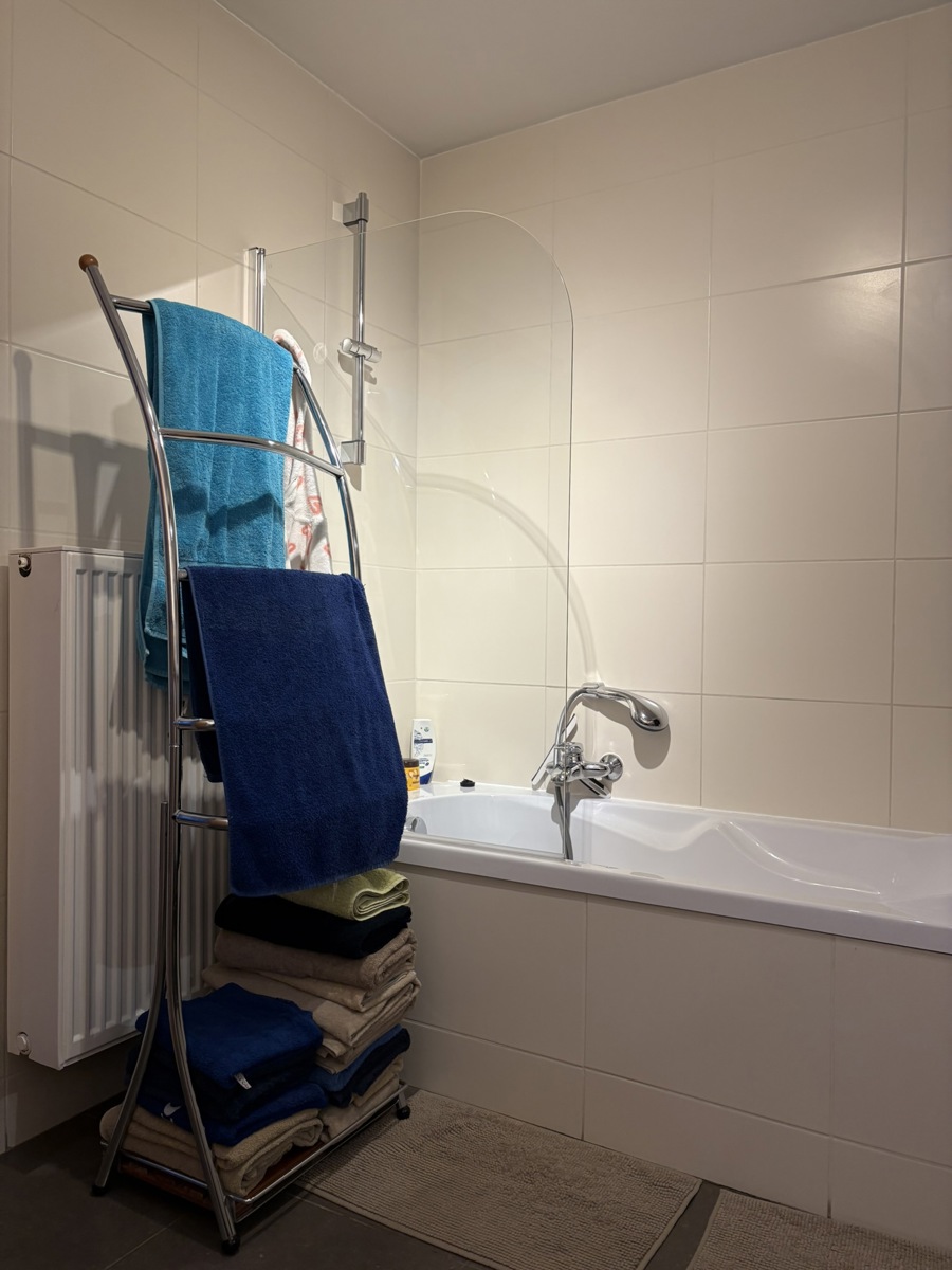 Het appartement beschikt over twee ruime slaapkamers. Eén van de slaapkamers geeft toegang tot een klein, privatief terrasje, tevens zuid georiënteerd. De badkamer is uitgerust met een bad (douchen is mogelijk in bad). Daarnaast zijn er aansluitingen voorzien voor een wasmachine en droogkast.