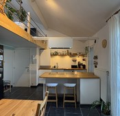 MOMENTEEL VERHUURD: Hip en gezellig appartement. Dit stijlvolle duplex-appartement combineert moderne luxe met een unieke indeling en een warme, uitnodigende sfeer. Het appartement bevindt zich op de 2de en 3de verdieping in een kleine residentie. De ruime leefkeuken en eethoek situeren zich op de 2de verdieping. De keuken is volledig uitgerust met een kookplaat, oven, microgolfoven, combi-frigo, vaatwasser en een stijlvol keukeneiland met barkrukken. Aansluitend is er een praktische berging of een bureau, ideaal voor extra opslag of thuiswerk, en een sfeervol terras (met loungehoek en terrasberging). Aan de voorzijde is een ruime slaapkamer. De moderne douchekamer is voorzien van een lavabo en toilet. Op de mezzanineverdieping, met een hoogte van 1m80, is een knusse zithoek gecreëerd. Perfect om ontspannen TV te kijken. Dit appartement biedt een speelse en functionele indeling met een warme, huiselijke sfeer. Met vlotte verbindingen naar Leuven en de op- en afrit van de E314. Ook de basisschool en winkels zijn vlakbij.