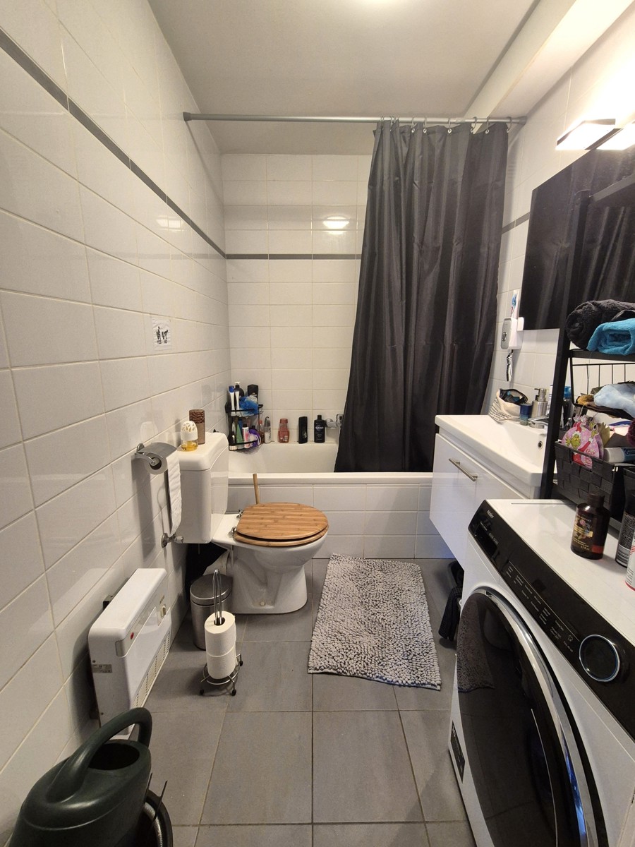 Aan een rustig gelegen doodlopend pleintje en naast een groen speelplein vinden we dit knus 1 slaapkamer appartement met tof, vernieuwd terras. Gelegen op de tweede verdieping (lift aanwezig) beschikt het appartement over een leefruimte (schuifdeur naar terras) met praktische verhoudingen en open keuken. De badkamer beschikt over een ligbad/douchecombinatie, enkele lavabo met onderkast, toilet en plaats voor de wasmachine. De slaapkamer is enorm lichtrijk dankzij de erker met groot raam en deur naar het terras. De afwerking is fris en modern en er is ook nog een functionele berging. De gemeenschappelijke kosten in het gebouw zijn laag (59,6 euro per maand). Het appartement is momenteel verhuurd en kan interessant zijn als investering of voor eigen bewoning. Voor meer info of een bezoek contacteer Dries op 0470 06 66 43 of dries@immosurplus.be