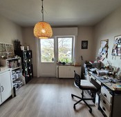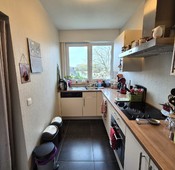 Vlot bereikbaar maar in een klein doodlopend straatje, uitzonderlijk rustig voor een appartement, ontdekken we dit gebouw met knappe jaren '70 architectuur. De uitstraling zet zich verder in de brede, lichtrijke traphal. Het appartement is overal ruim bemeten. De inkomhal biedt plaats aan een lange vestiairekast en extra aankleding. In de gigantische leefruimte (42m²) kan men meubilair indelen hoe men maar wil en is er veel licht dankzij de brede raampartij met een mooi uitzicht. De afzonderlijke keuken is praktisch, smaakvol en volledig uitgerust (incl. vaatwasmachine) en de positie leent zich om er een open keuken van te maken. Beide kamers meten 14m² met een handige vierkante verhouding en geven beiden uit op het brede terras met groenzicht. De badkamer is volledig betegeld en uitgerust met lavabo en ligbad/douchecombinatie. De gunstige EPC score en inbegrepen berging en autostaanplaats maken het plaatje compleet. Kom uw nieuwe woonst uw investering ontdekken en contacteer Dries op 0470 06 66 43 of dries@immosurplus.be