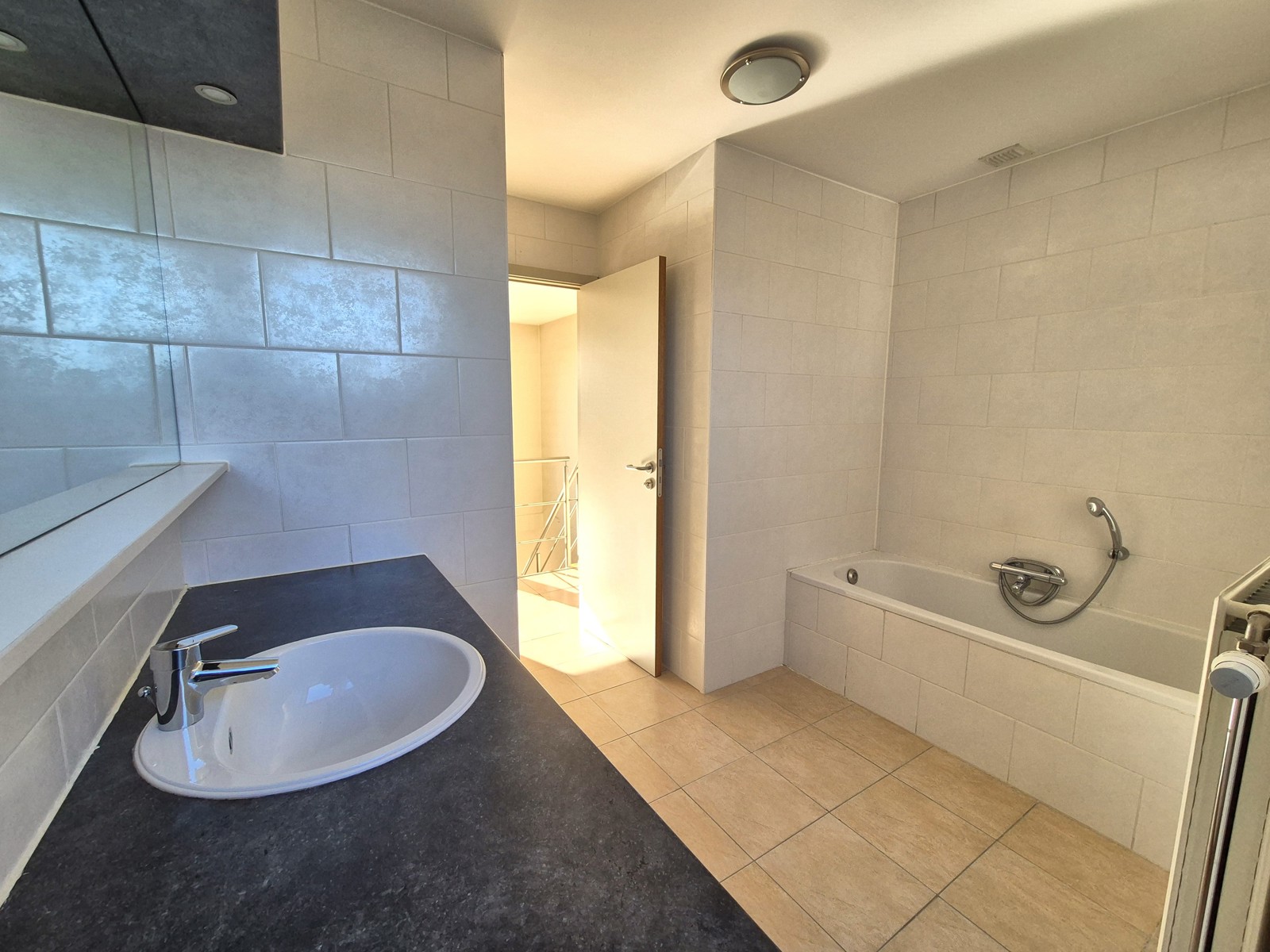 Centraal in de dorpskern aan een mooi heraangelegd hoekpleintje vinden we dit knap en ruim duplex appartement met optimale indeling en gunstig EPC. Het appartement is rustig, achteraan gelegen zonder inkijk van buitenaf. De inkomhal heeft plaats voor een vestiairekast en biedt toegang tot het gastentoilet. De lichtrijke leefruimte heeft royale verhoudingen voor groot meubilair en de open trap en vide ernaast spelen met de plafondhoogte en lichtinval. Aansluitend is er de goed onderhouden keuken in L-vorm (de lengterichting van de keuken is geschikt om er een open keuken met eiland van te maken) uitgerust met een keramische kookplaat, telescopische dampkap, inbouw vaatwasmachine, microgolf en koelkast plus anderhalve inox spoelbak. Vanuit de keuken bereikt men nog een praktische berging. Op het verdiep is er een polyvalente (bureau of hobbykamer), gezellige ruimte open met de trap en vide met toegang naar het ruime, zuid-gerichte terras met veel privacy. Verder ontdekken we een grote en kleinere slaapkamer (ook toegang tot terras), een tweede apart toilet en de badkamer met douche én ligbad, breed lavabomeubel en ruimte voor de wasmanden of een extra kast. Op het gelijkvloers is er een vlot toegankelijke afgesloten staanplaats bij aan te kopen voor 20.000 euro. Kortom een appartement met veel potentieel op een interessante ligging waar enkel schilderwerken nodig zijn. Voor vragen of een bezoek, contacteer Dries op 0470/066643 of dries@immosurplus.be