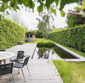 De tuin is uitzonderlijk groot en beschikt over een doorgang langs de zijgevel; een handige aparte toegang voor o.a. fietsen, vuilnisbakken... De kers op de taart is zonder twijfel de zwemvijver, waar het heerlijk ontspannen is.