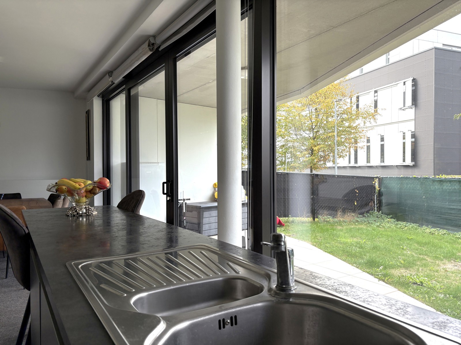 Recent (verhuurd) energiezuinig gelijkvloersappartement van 86m² met 2 slaapkamers, een tuintje en een groot terras. Inclusief ondergrondse autostaanplaats. Het is gelegen in een mooie residentie vlakbij het station. Indeling: inkomhal met berging, living met open keuken, nachthal, apart toilet, 2 slaapkamers, badkamer met bad en handdoekradiator. De keuken is geïnstalleerd en voorzien van o.a. een oven, microgolfoven, koelkast, keramische kookplaat en vaatwasser. In de berging is er een aansluiting voor een wasmachine. Het appartement is volledig geschilderd, voorzien van mooie lichtarmaturen en gordijnen. EPC 169kWh/m² jaar. Dit appartement is momenteel verhuurd, het is beschikbaar voor eigen gebruik mits opzeg.
