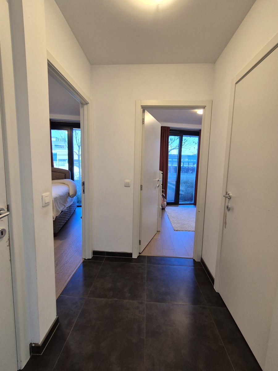 Recent, energiezuinig gelijkvloers appartement van 86m² met toffe zuidwest gerichte tuin en overdekt terras. Het is gelegen in een architecturale residentie vlakbij het station in een mooie buurt. Indeling: inkomhal met vestiaire en toegang berging, living met open keuken en gigantische raampartij (aluminium) die binnen/buiten doet vervagen, nachthal, apart toilet, 2 slaapkamers, badkamer met bad/douchebinatie + breed lavabomeubel en handdoekradiator. De keuken is volledig geïnstalleerd en voorzien van o.a. een oven, microgolfoven, koelkast, keramische kookplaat en vaatwasser. In de berging is er een aansluiting voor een wasmachine. Het appartement is voorzien van mooie lichtarmaturen en gordijnen. Laag EPC 169kWh/m² jaar. Er dient een ondergrondse autostaanplaats bij aangekocht te worden voor 25.000 euro. Het appartement is momenteel verhuurd dus zowel interessant als investering als voor eigen bewoning.