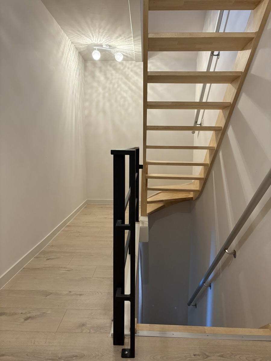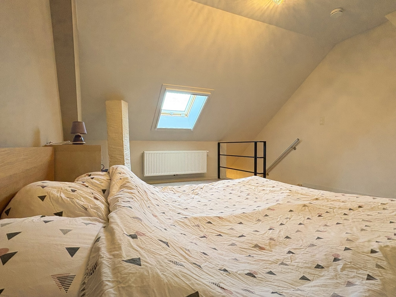 Op het gelijkvloers bevindt zich een inkomhal met gastentoilet. De leefruimte is ingedeeld met een zithoek en eethoek, aansluitend bevindt zich de volledig ingerichte keuken, voorzien van een keramische kookplaat, oven, vaatwasser en koelkast. Verder zijn op het gelijkvloers ook de badkamer met bad én douche, en een aparte wasplaats terug te vinden. Op de eerste verdieping bevinden zich twee slaapkamers: een master bedroom en een iets kleinere kamer van ongeveer 10 vierkante meter, ideaal als kinderkamer of bureau. De tweede verdieping biedt een sfeervolle zolderkamer met een echt loftgevoel.