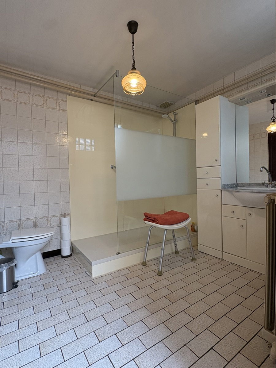Op de eerste verdieping zijn twee slaapkamers en een ruimte die ingericht kan worden als dressing of als bureau. Daarnaast is er ook nog een zolder en een kelder aanwezig. De tuin is ook ruim en rustig waardoor men hier volop van kan genieten. Ook op de oprit is mogelijkheid om te parkeren.