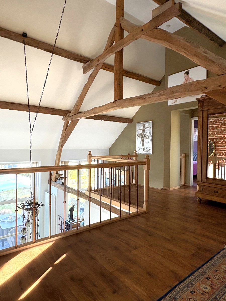 Dankzij de vide geniet u van een open gevoel en uitzicht op de woon- en eetkamer. In de woning is vloerverwarming voorzien, dat zorgt voor een aangenaam wooncomfort.