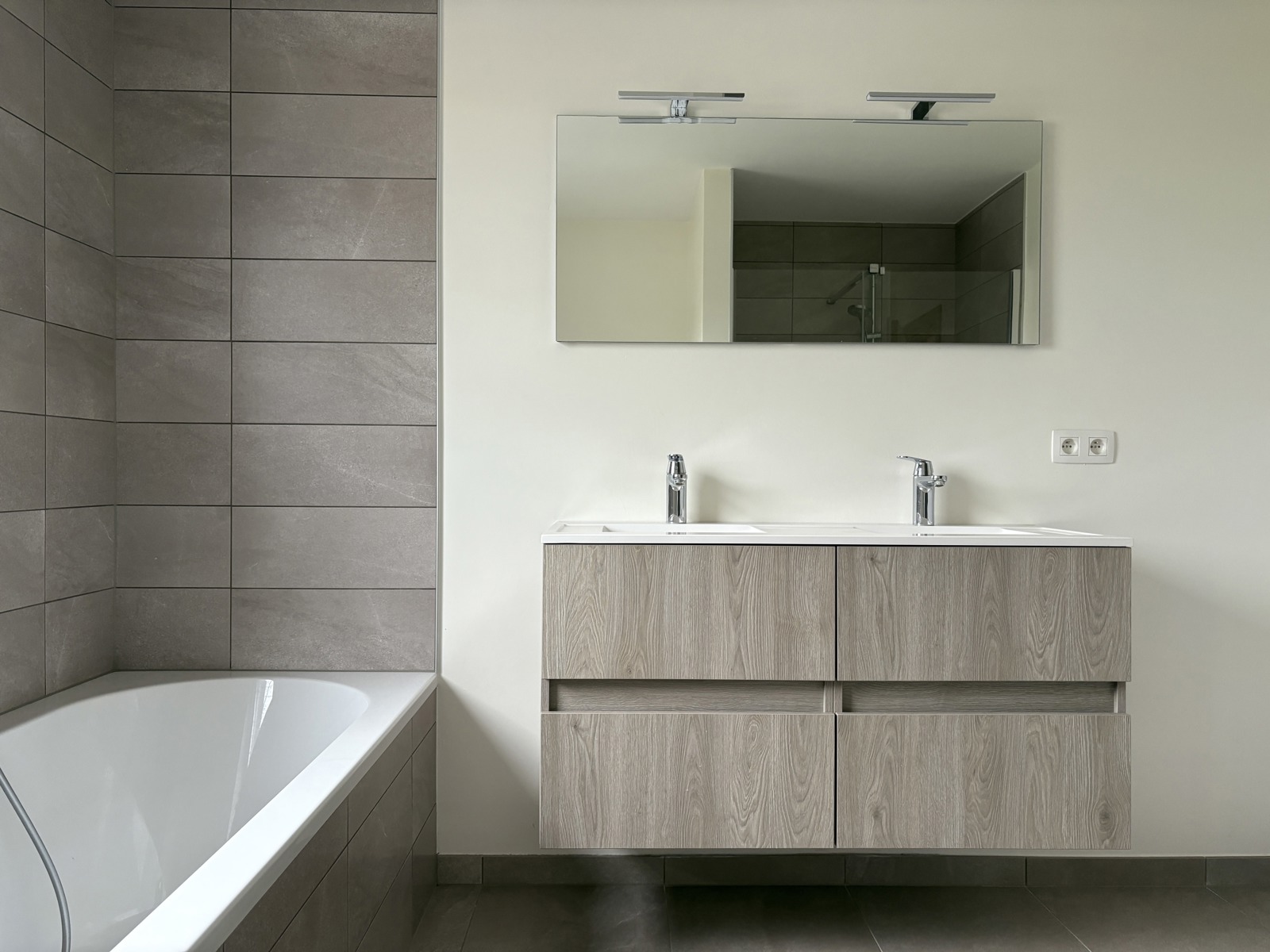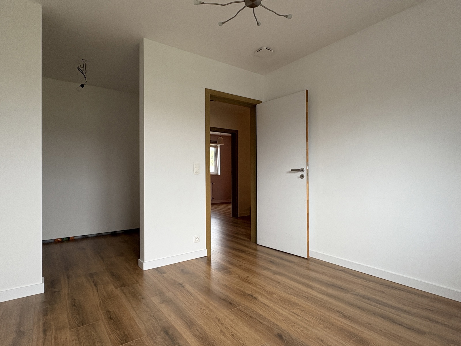 De leefruimte met open keuken is lichtrijk en aangenaam ingedeeld. Voor extra wooncomfort zijn er tal van voorzieningen aanwezig: vloerverwarming beneden, ventilatie systeem D, regenwaterrecuperatie, vliegenramen over de hele woning en zonnepanelen.