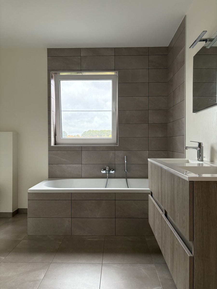 Indeling: gelijkvloers: inkomhal met apart toilet, leefruimte met open keuken en berging. 1ste verdieping: nachthal, 3 slaapkamers waarvan 1 met ensuite dressing, badkamer met dubbele lavabo, toilet, inloopdouche en ligbad. 2de verdieping: zolder die eenvoudig kan worden omgebouwd tot extra kamers.