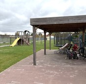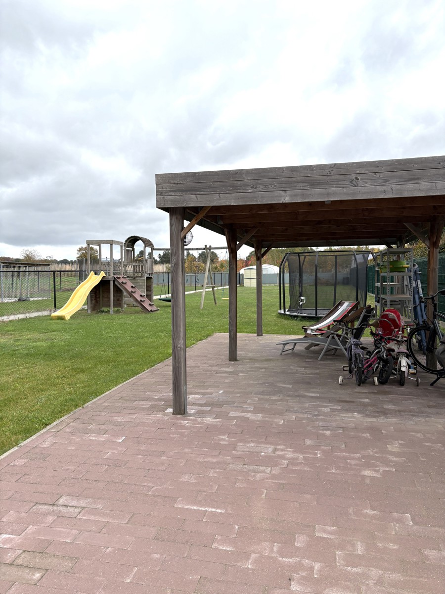 De mooi aangelegde en volledig omheinde tuin met carport is een troef: een rustige plek om te ontspannen of gezellig buiten te vertoeven.