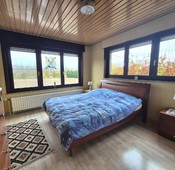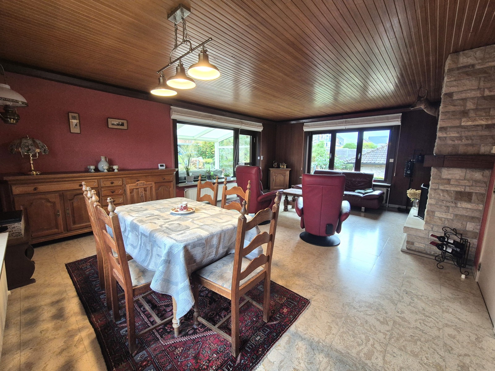 Gelegen in een rustige straat tegenover velden maar vlot bereikbaar, vinden we deze knappe open bebouwing met uitnodigende voortuin en ruime oprit die doorloopt links naast de woning (extra brede zijtuinstroken) waardoor er veel parkeerplaats is. Er is ook een brede en diepe (4,4 op 7,14m) inpandige garage met aansluitend 3 ruimtes als berg-/werkplaats. Dit niveau heeft ook natuurlijk licht waardoor dit makkelijk kan omgevormd worden tot een professionele ruimte/groot bureau of een extra slaapkamer met badkamer. Erboven vinden we het volledige woonniveau toegankelijk via de inkom aan de rechter zijtuin en aansluitend op de zuid-gerichte achtertuin. De indeling zit praktisch in elkaar met een royale inkom met veel uitstraling (plaats voor zetel/vestiaire), hier kan ook een deel afgeschermd worden als bureauhoek. Rechts is er het leefgedeelte met uitgeruste keuken en daarachter een berging alsook de enorm lichtrijke living met salon en eettafel (mogelijk om muur tussen keuken en living op te maken). De living geeft uit op een overdekt terras (kan omgevormd worden naar veranda voor uitbreiding living). Links van de inkom is er dan nog een afzonderlijk toilet, badkamer met inloopdouche en dubbel lavabomeubel en de 3 mooie slaapkamers met grote ramen. Dit is een solide, doordachte constructie met veel pluspunten en goed onderhouden maar is toe aan een update. Kom uw nieuwe woonst bekijken en contacteer Dries via 0470/066643 of dries@immorsurplus.be
