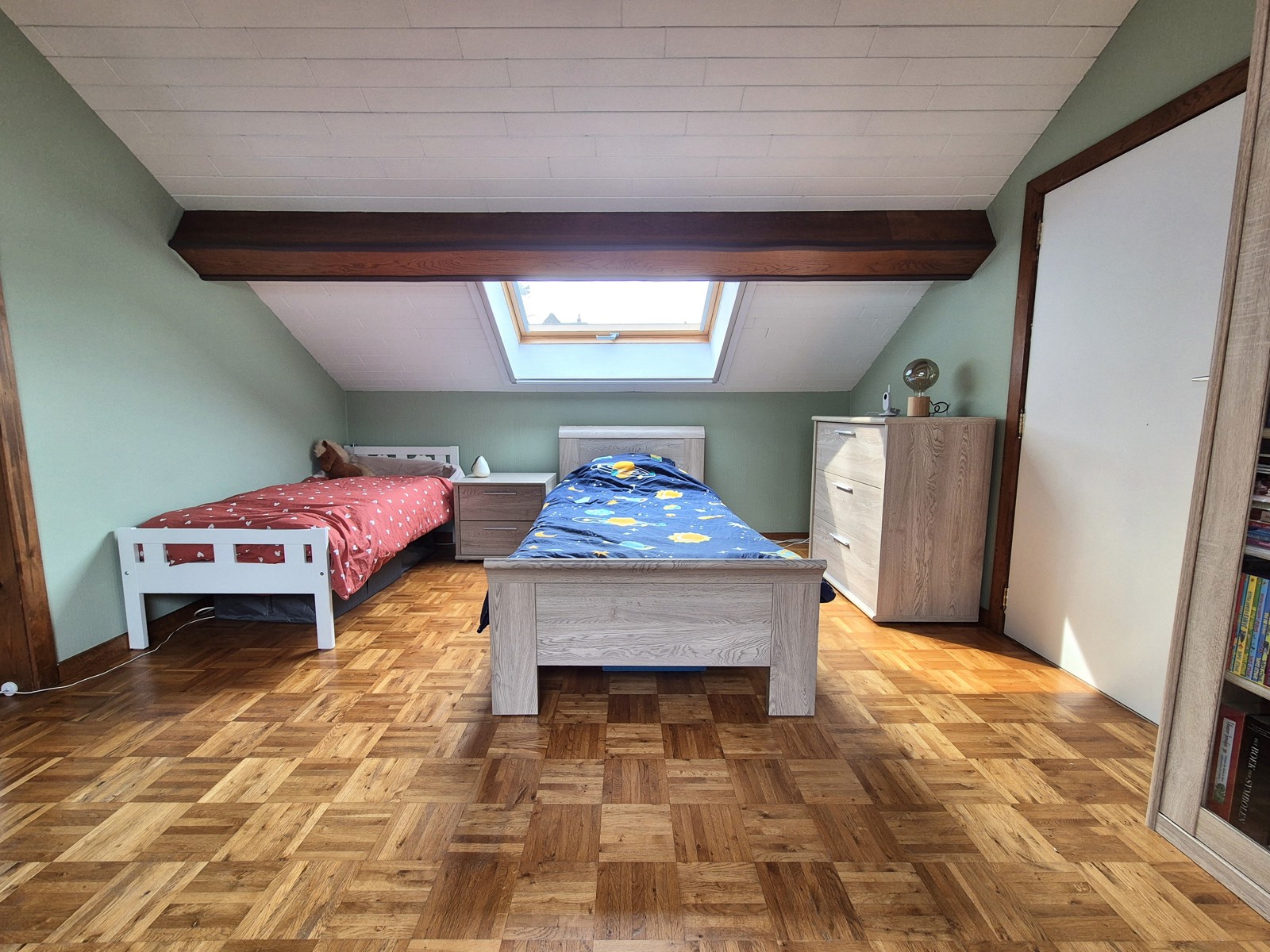 Dankzij de verhoogde ligging met keerwand en haag geniet deze knappe open bebouwing van veel privacy. Op de oprit kan men 2 wagens plaatsen (+ extra op de helling bij bezoek). De woning kreeg in 2020 een nieuw, dik geïsoleerd dak en condenserende gasketel. De indeling zit goed in elkaar en zowel de living als alle slaapkamers hebben twee raamvlakken wat de ruimtes sfeervol en open doet aanvoelen. In de inkom is een vestiairesas voorzien en de living biedt plaats aan een ruim salon en eettafel met een gezellige pelletkachel (voordelig verwarmen). De keuken is voorzien van alle comfort en heeft een ontbijthoek met aansluitend een ruime berging, via de keuken kan men ook de veranda bereiken. De ruime, vroegere inkomhal langs de voorzijde kan voor allerhande functies dienen (speelhoek, bureau, fitness, logeerkamer, ...). Verder treffen we op het gelijkvloers het apart toilet, de badkamer met bad/douchecombinatie en strak dubbel lavabomeubel, twee slaapkamers (koel gelegen vlakbij de bomen achter de woning) en aparte traphal aan. Op het onderdaks verdiep komen we boven in een open ruimte ideaal als bureau of hobbykamer, van daaruit bereiken we een ruime 3e slaapkamer en nog een berging of dressing. Dit is een praktische woning die alle comfort biedt, men voelt zich hier direct thuis en de belangrijkste punten (dak en verwarming) zijn volledig up-to-date (+ geen asbest en elektriciteit conform). Contacteer Dries op 0470/066643 of dries@immosurplus.be voor meer info of een bezoek.