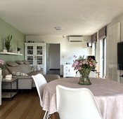 De leefruimte is lichtrijk en aangenaam ingedeeld, met aansluitend de keuken. Voor extra wooncomfort zijn er tal van voorzieningen aanwezig: airco in leefruimte en slaapkamers, een pelletkachel, zonneluifel, waterverzachter, domotica videofoon en rolluiken die op afstand bedienbaar zijn. Bovendien zorgen de 14 zonnepanelen met thuisbatterij voor een lage energiefactuur.