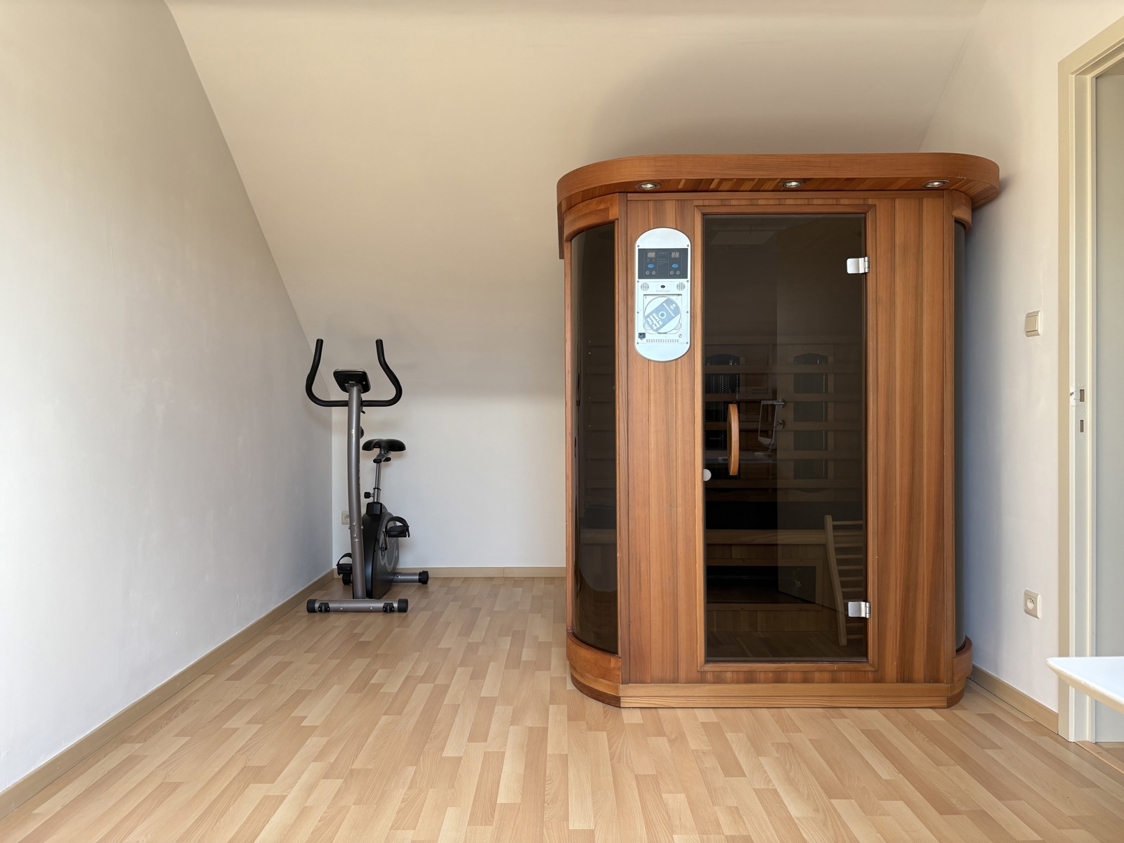 De leefruimte is lichtrijk en aangenaam ingedeeld, met aansluitend de keuken. Voor extra wooncomfort zijn er tal van voorzieningen aanwezig: airco in leefruimte en slaapkamers, een pelletkachel, zonneluifel, waterverzachter, domotica videofoon en rolluiken die op afstand bedienbaar zijn. Bovendien zorgen de 14 zonnepanelen met thuisbatterij voor een lage energiefactuur.