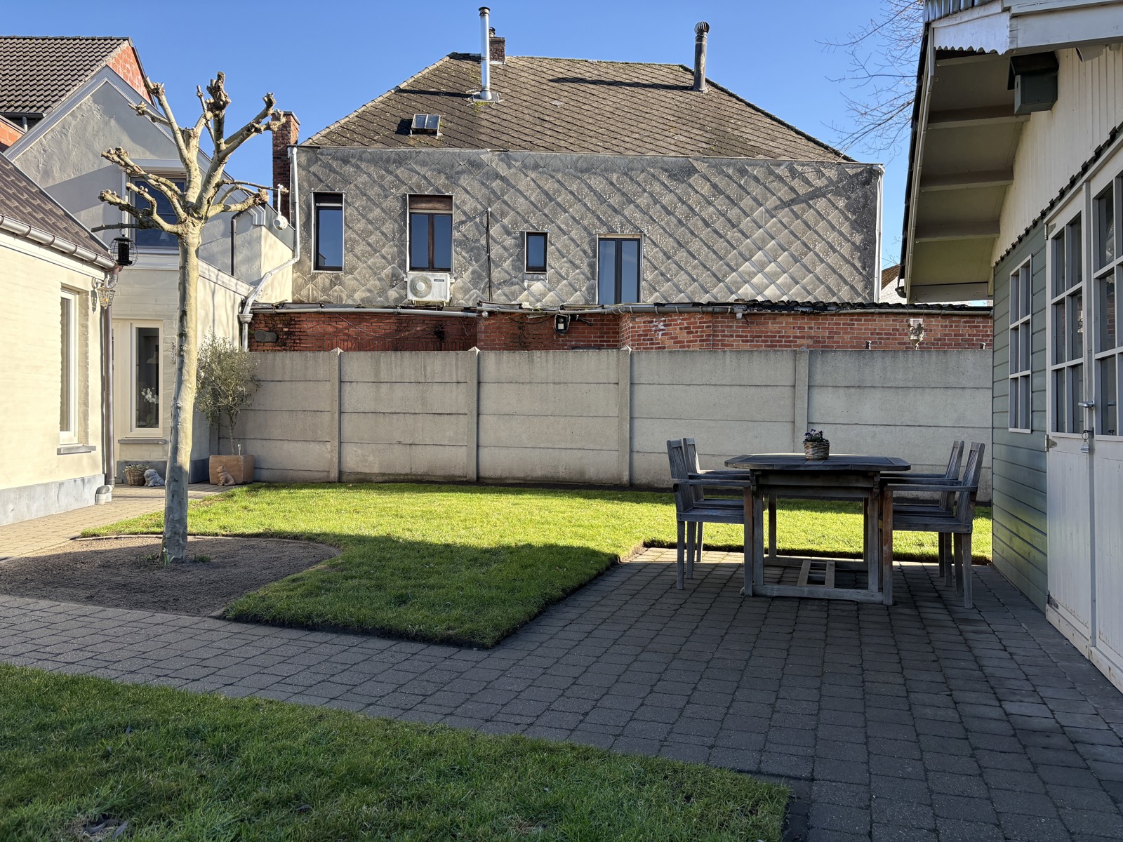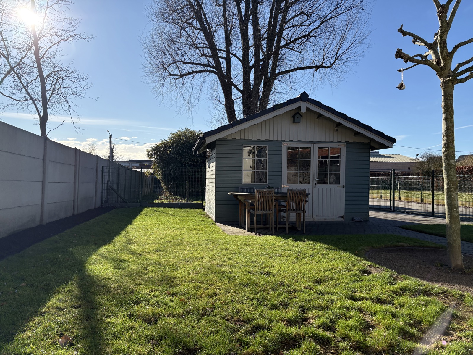 Achteraan de woning bevindt zich een kleine, goed georiënteerde tuin waar het aangenaam vertoeven is. Er zijn 2 aangelegde terrassen. Daarnaast is er een praktisch tuinhuis voor extra opbergruimte. De tuin is volledig omheind.